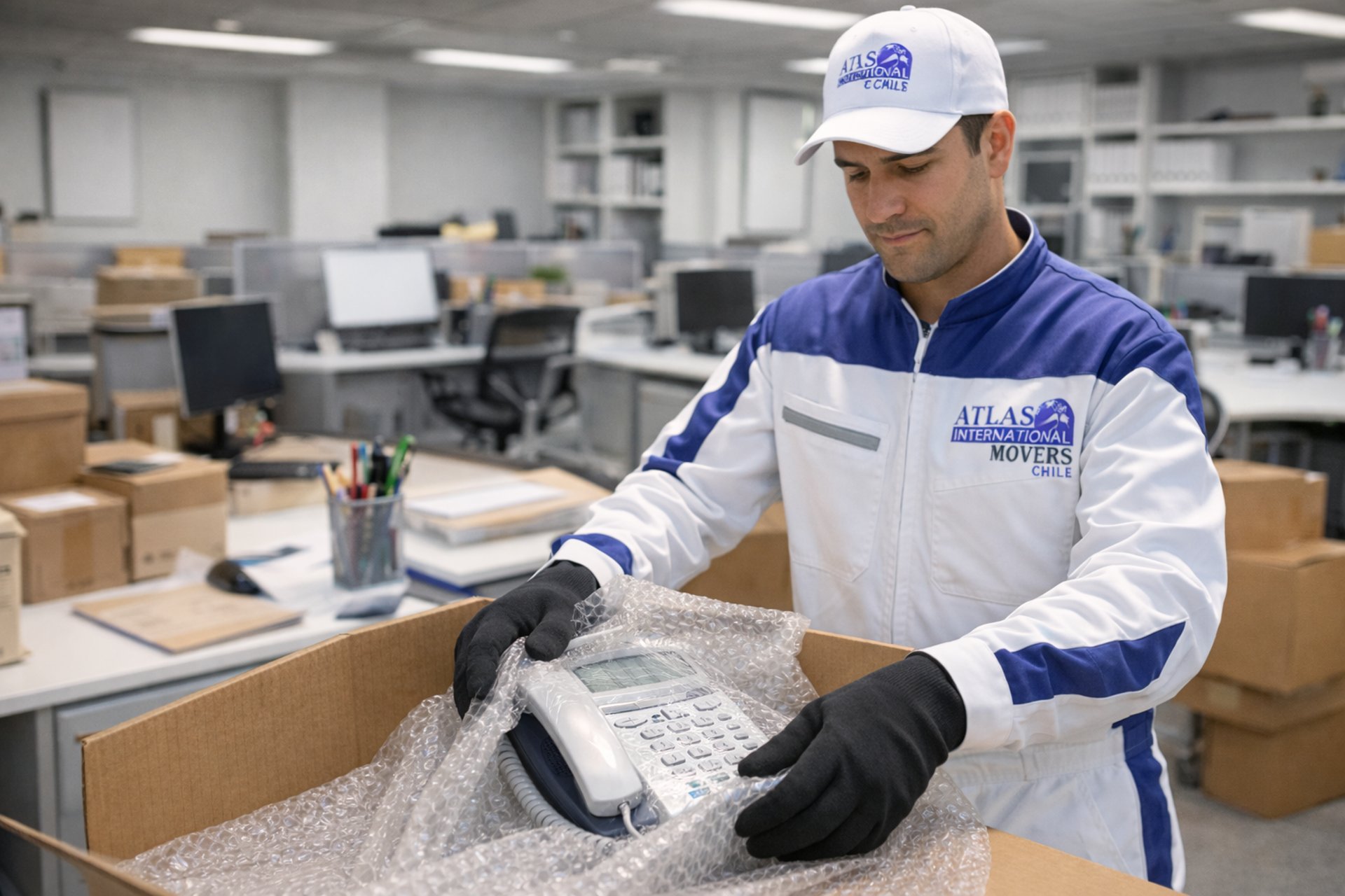 Embalaje por tipo de activo: archivo, muebles, monitores, CPUs, arte corporativo
